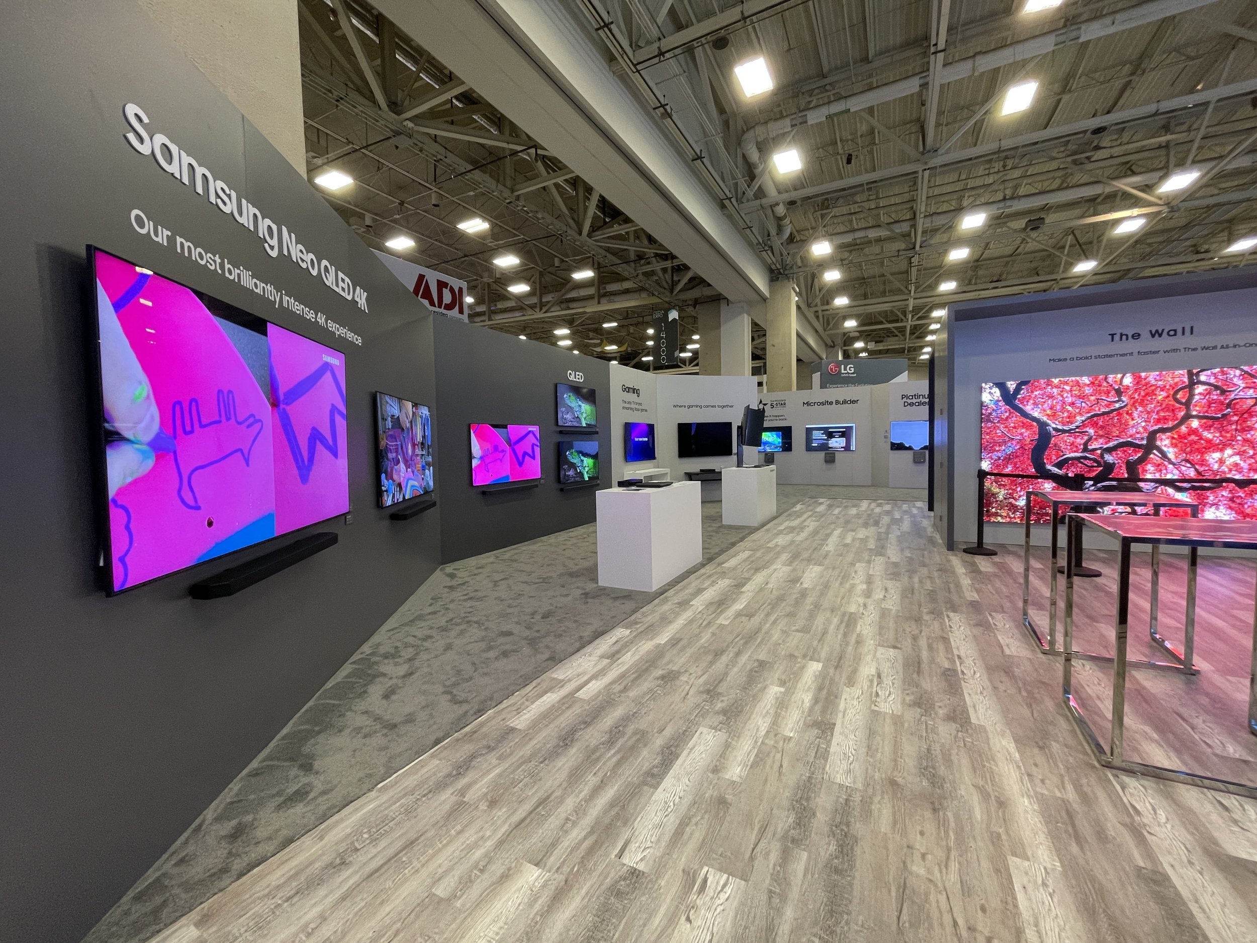 The Mecca touch: We’ve built everything from minimalist pop-ups to towering, immersive environments that dominate the floor.