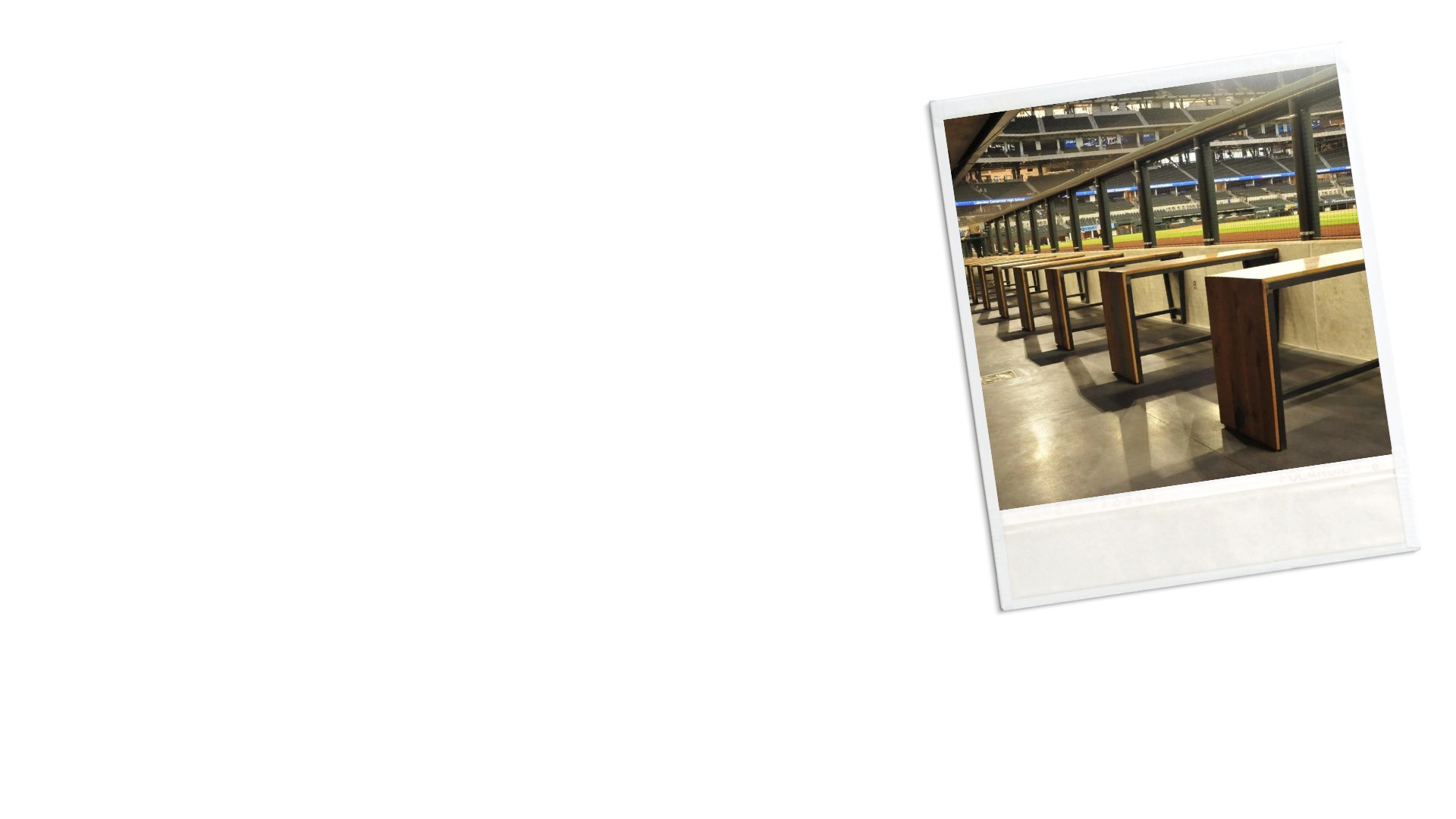 Using our burn table, we were able to get precise cuts of the Texas Rangers logo for the suites and offices at the new Globe Life Field. Our skilled carpenters also mass produced dozens of custom tables, hand staining every top - for the bars and restaurants in the stadium. The bespoke touches all over Globe Life Field create such a luxurious sports experience for everyone attending the game.