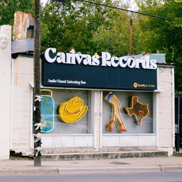 Doesn't this record store look like it's been here forever? You'd never know it was a pop-up experience created by Spotify For Artists & ACL Festival. We're so proud to have fabricated + installed all the elements of this amazing custom event from the signs outside the venue to everything inside: the black wall with lighting, the backlit record display, the bar, custom shelving, & the record listening stations. What a unique experience. How can we help you rock a pop up? Contact us today and let’s work together!